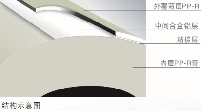 它是在美江牌PP-R管的基礎(chǔ)上采用熱熔粘合技術(shù)將PP-R與合金鋁在高溫下有機粘合,外覆PP-R保護層生產(chǎn)出“美江牌”PP-R塑鋁穩(wěn)態(tài)管,PP-R塑鋁穩(wěn)態(tài)管具有聚丙烯一膠一合金鋁一膠一聚丙烯的五層結(jié)構(gòu),其中間鋁層起加強作用。